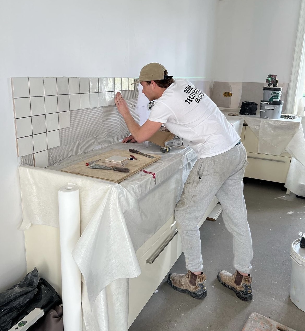 Mijn naam is Davey van Duivenbode. Na negen jaar met veel plezier in loondienst te hebben gewerkt, besloot ik in 2023 de sprong te wagen: de start van mijn eigen bedrijf, Duif Tegelwerken.